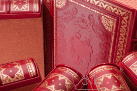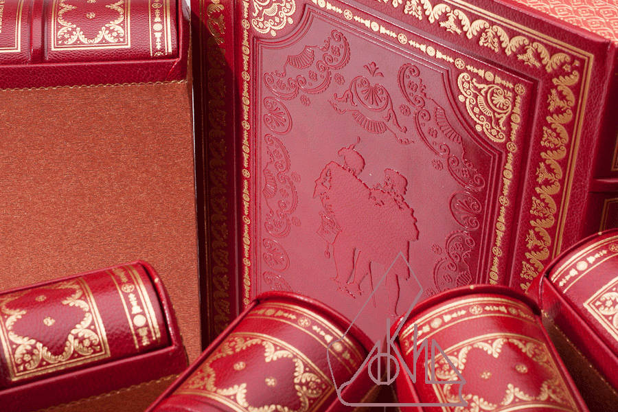 - Переплетфранцузский ручной работы из натуральной кожи Chagrin Atlas, тиснение золотом, блинтовое тиснение, бинты, шёлковое ляссе